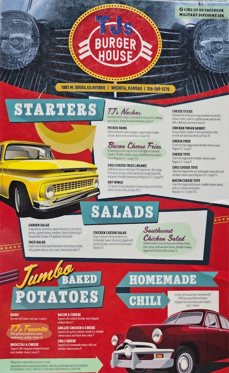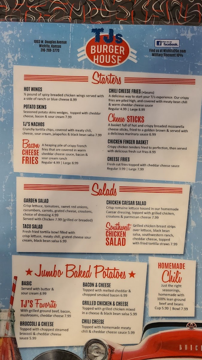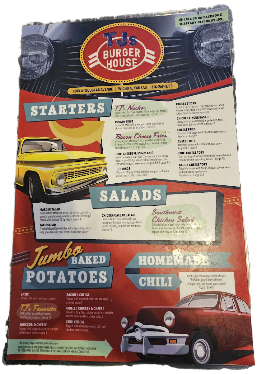 Welcome to TJ's Burger House, your new go-to spot for mouthwatering burgers and a warm atmosphere located at 1003 W Douglas Ave, Wichita, KS. Guests rave about the fantastic selection and quality of food. Each burger is cooked to order, ensuring juicy, fresh flavors that never disappoint.